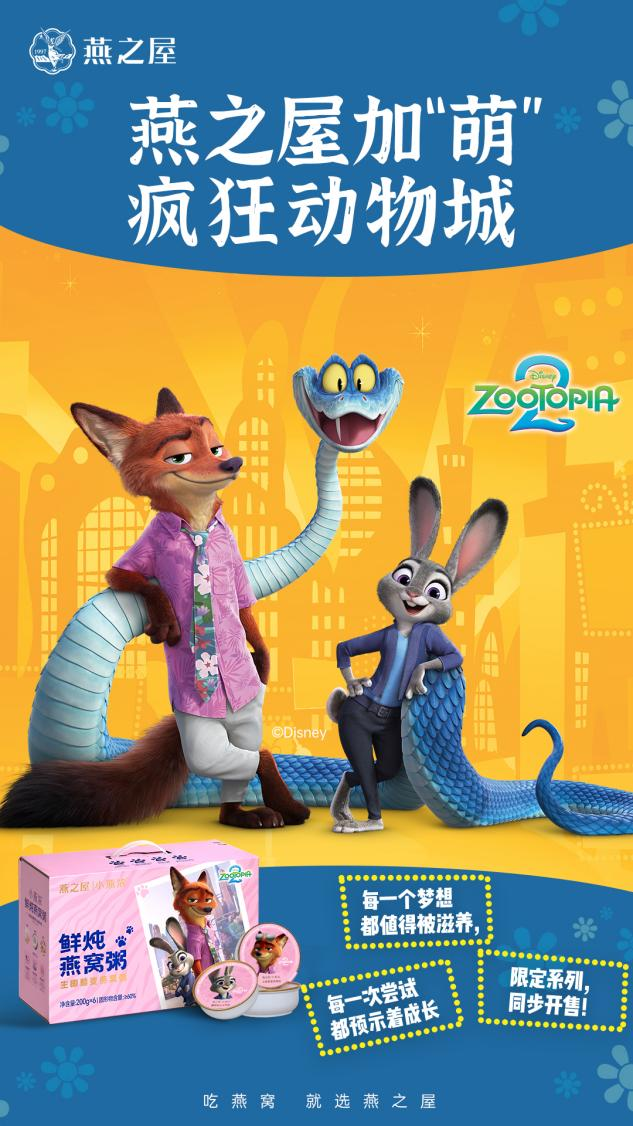 燕之屋聯(lián)合迪士尼《瘋狂動(dòng)物城2》甜蜜官宣,限定燕窩粥活力全開(kāi)